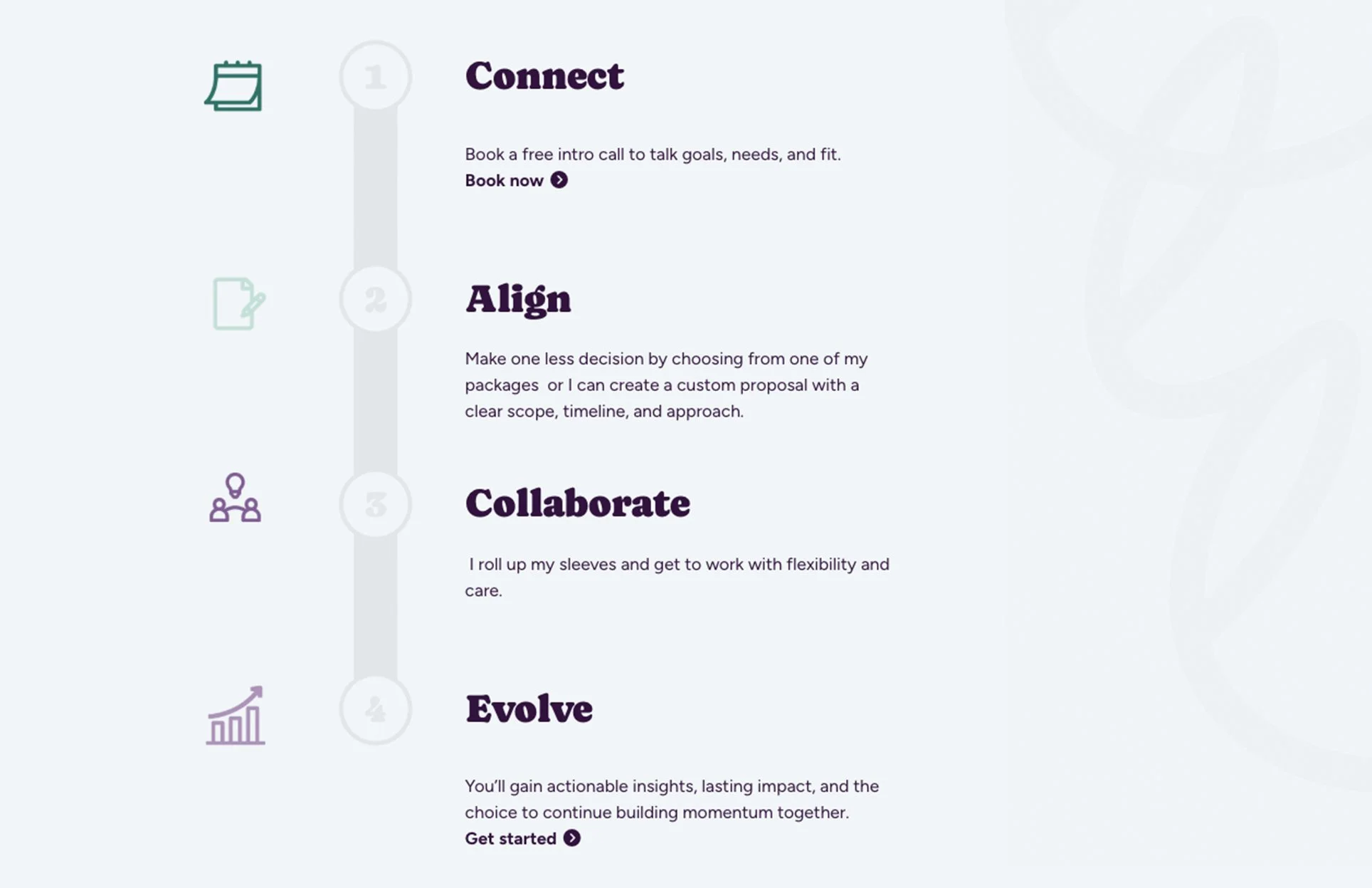 Overall, the website strengthens her credibility and gives potential clients a clear sense of what it’s like to work with her.