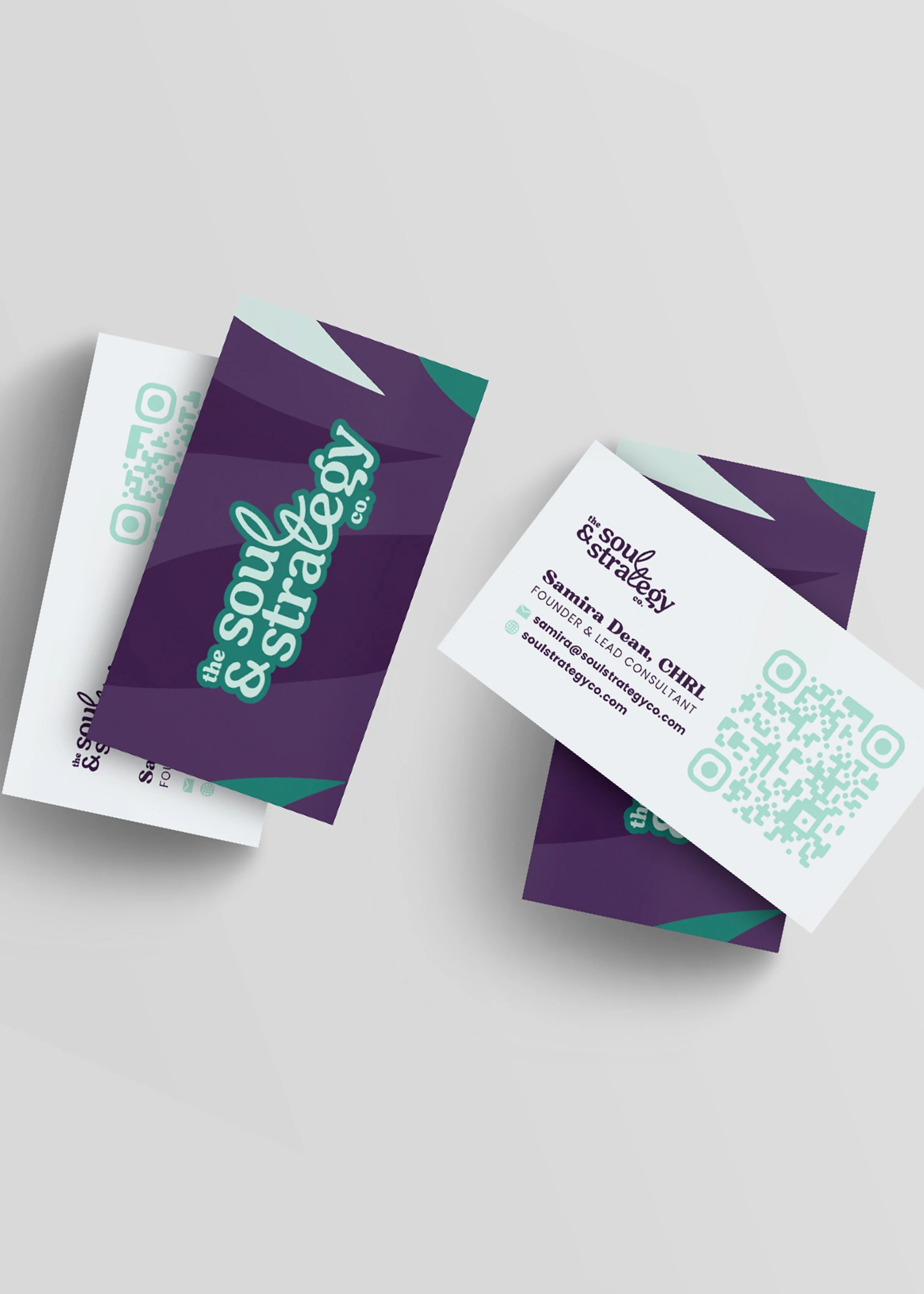 Next, I’ve featured some social media graphics and business cards. Using branded imagery will help The Soul & Strategy Co. be easily recognized across all platforms, develop brand consistency and help clients get a feel for the values of the business.