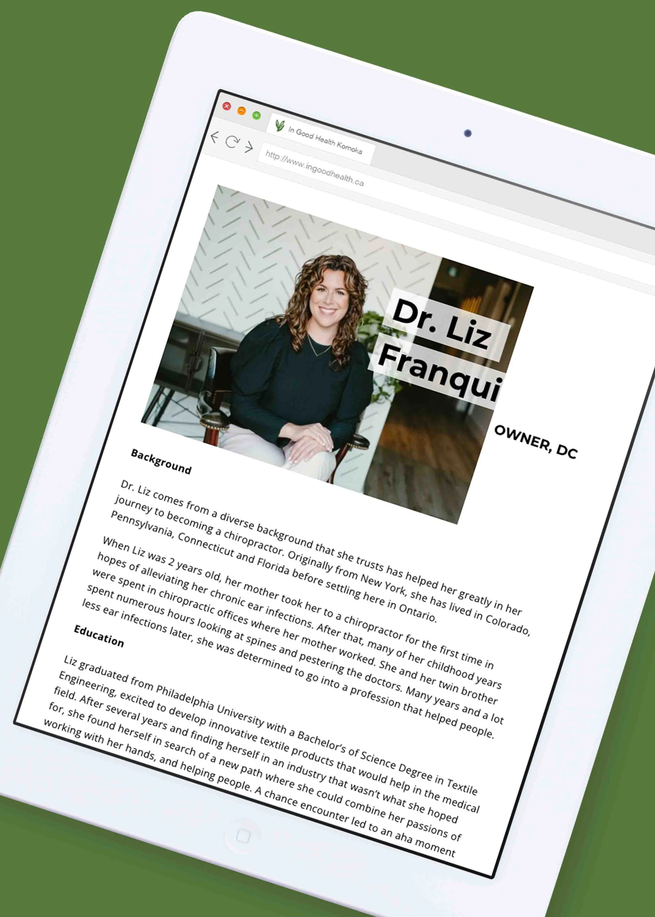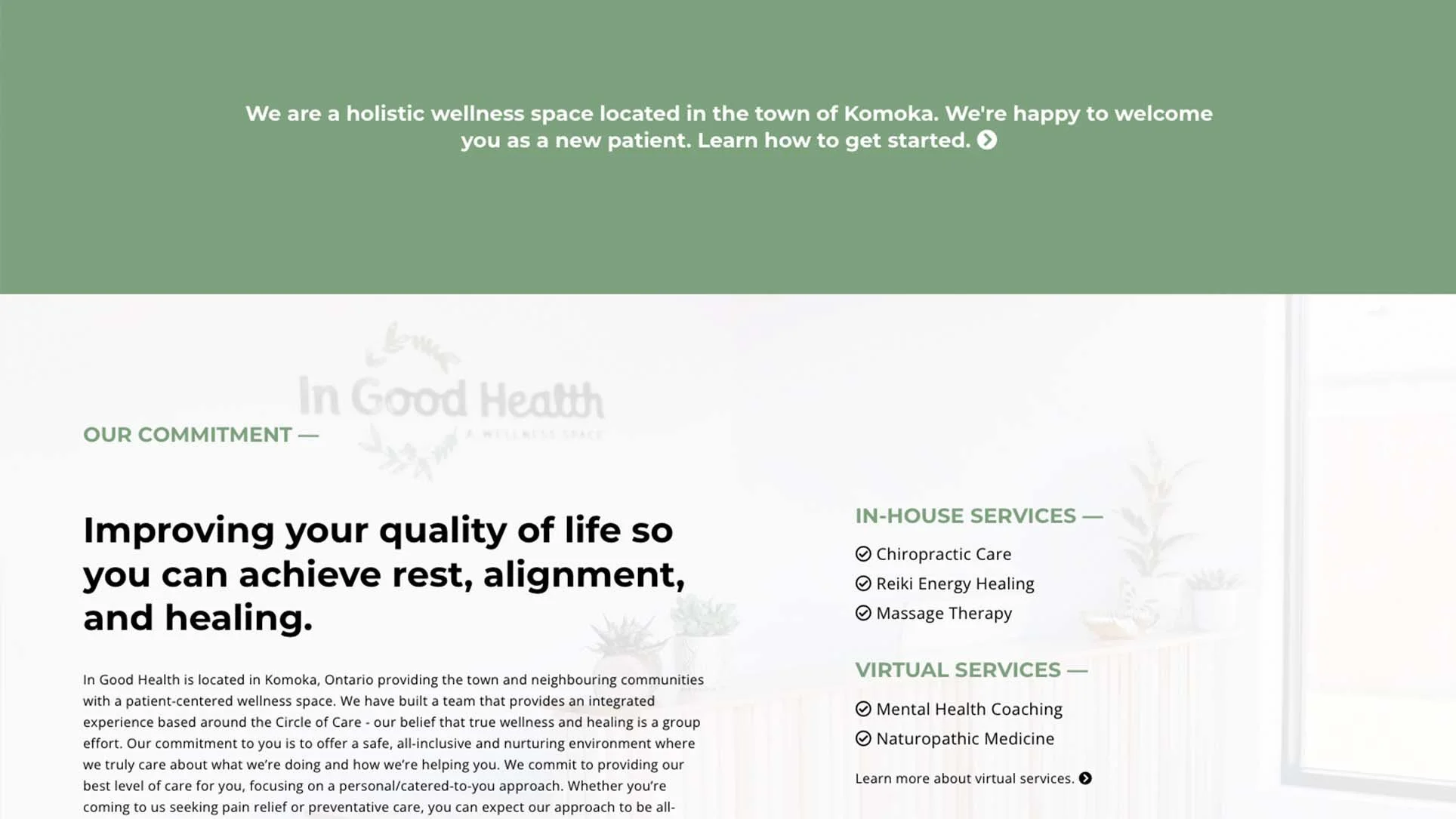 By optimizing the website design, we aim to highlight the exceptional services and approach of In Good Health, and make it easier for residents of Komoka, Ontario to find and access the care they need.