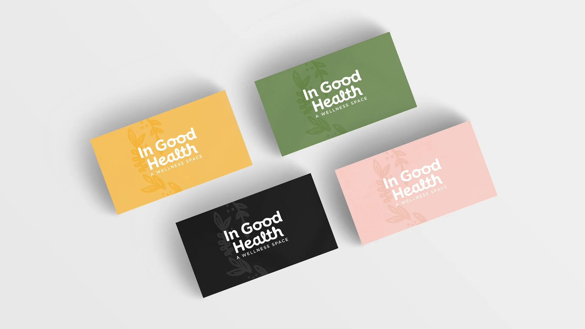In Good Health already had a beautiful logo designed by the extremely talented Beth at Fresh Fish Studio. I wanted to expand the brand identity more by extending the colour palette, patterns, styles, and other imagery. I designed some marketing collateral to match this aesthetic.