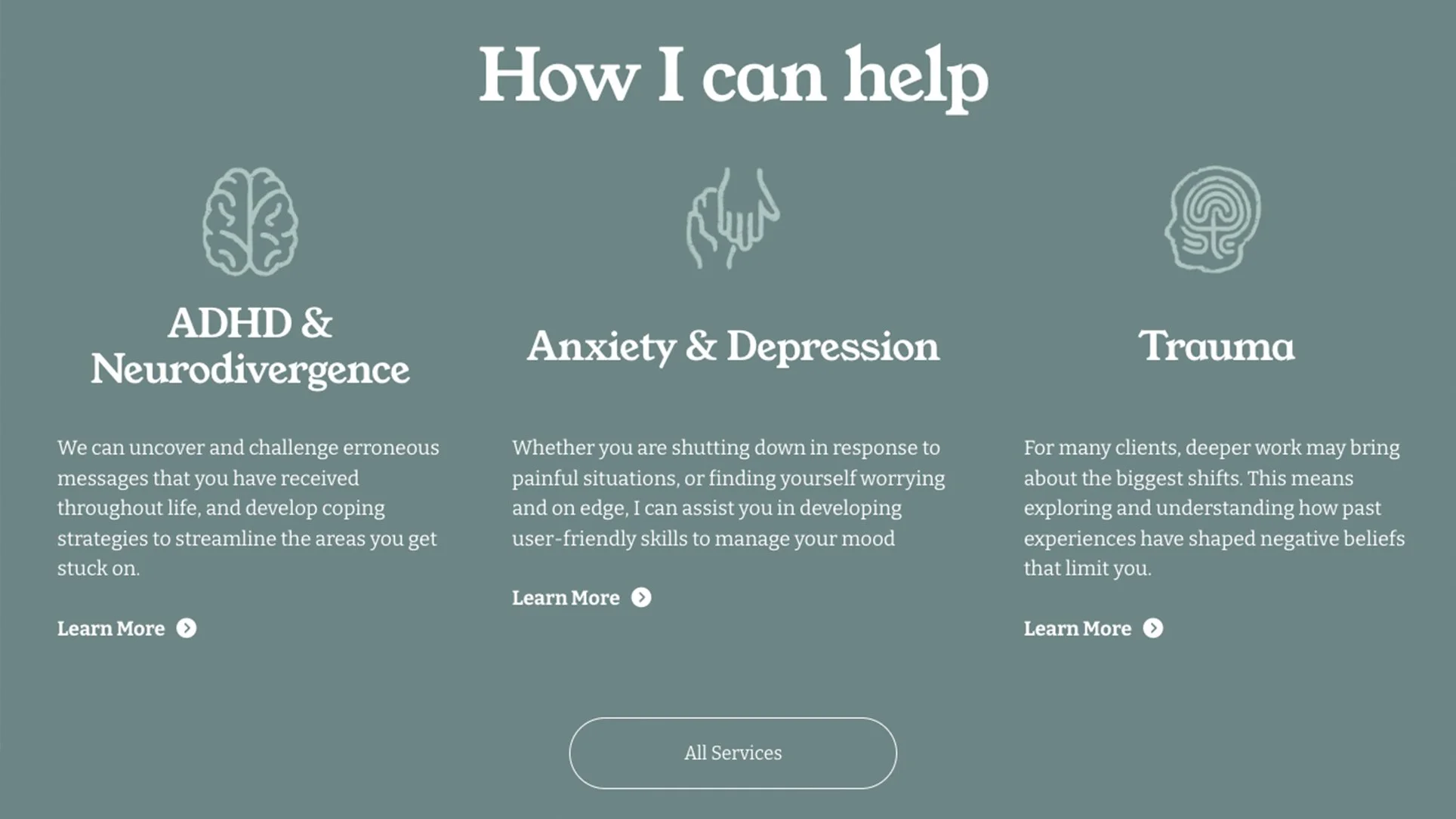 The creation of this website has helped establish a cohesive, inviting identity that reflects trust and approachability. It will enhance Kayla’s online presence, making it easier for potential clients to explore her therapy services and unique approaches. Watch the video preview of the website below or visit the full site here.