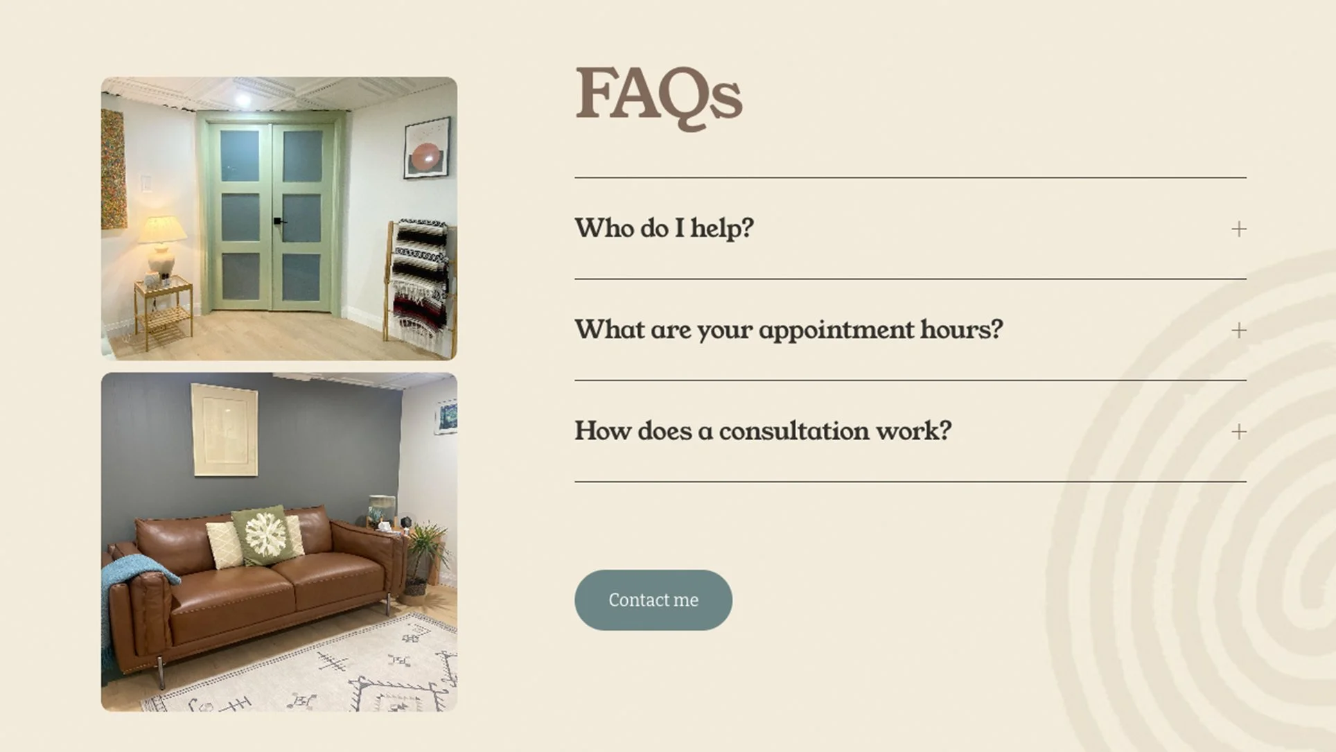 Kayla tasked me with designing a therapy website that embodies a gentle, calm approach to therapy. The primary goal of the website launch was to provide clients with easy access to information and a seamless way to reach out, while also serving as a professional representation of Kayla for others in her field. Also, she wanted her website to communicate the idea of a labyrinth, symbolizing the journey she guides her clients through various therapeutic approaches. Explore the web design below for Kayla, who provides in-person therapy in London, Ontario and virtual services Ontario-wide.