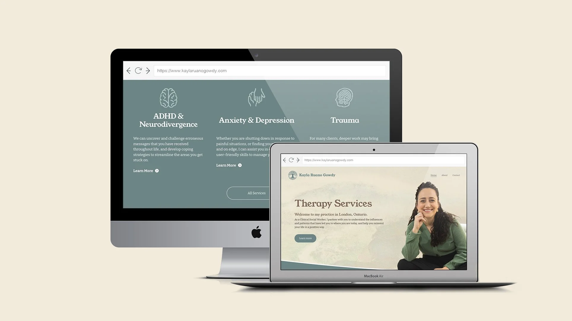 I’m happy to share the visual branding and web design I developed for Kayla Ruano Gowdy, a Social Worker providing therapy services for adults and couples in London, Ontario.