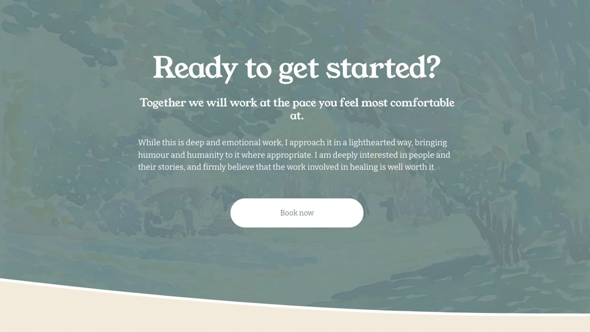 I designed a space that feels welcoming, friendly, and fosters a sense of trust and calm. Since Kayla didn’t have any pre-existing branding, I did also establish brand colours, style, and identity. A logo was not designed at this time, but I did select typography that created a cohesive look. In creating the color palette and visuals, I aimed to create a natural and approachable brand image. Soft, earthy tones and textures resembling watercolor were chosen to evoke a sense of peace. The typography features rounded serifs, enhancing the overall welcoming vibe.