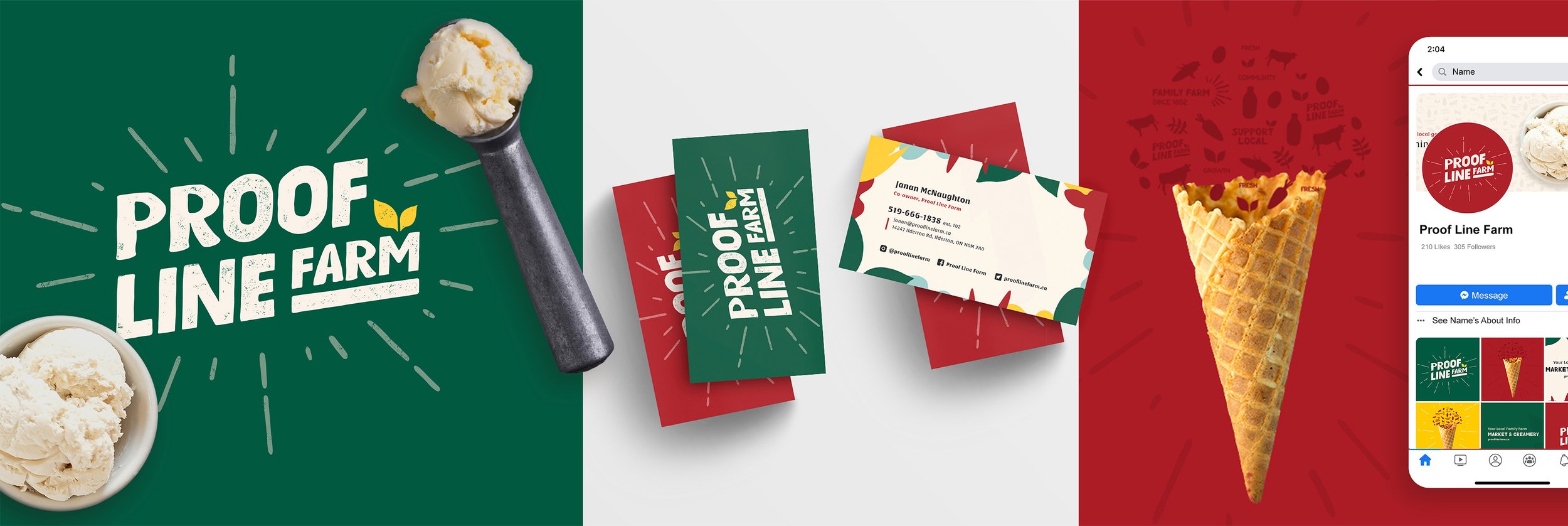 Proof Line Farm wanted the logo and branding to take inspiration from their farm’s roots and the palette of the newly built creamery (red and black). The branding was to represent a farm that is friendly, modern, growth-oriented, and experiential. They really want locals from London, Ontario to experience the farm and learn where their food comes from. With this in mind, I knew I wanted to create a brand that was fun and forward-thinking.