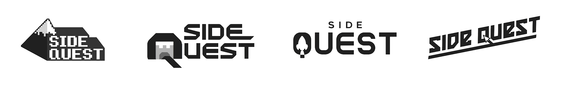I began by exploring concepts around personal growth, technology, adventure, and the playful idea of “side” in Sidequest. I developed several logo directions to test these themes, combining retro gaming cues with modern, tech-forward aesthetics.
