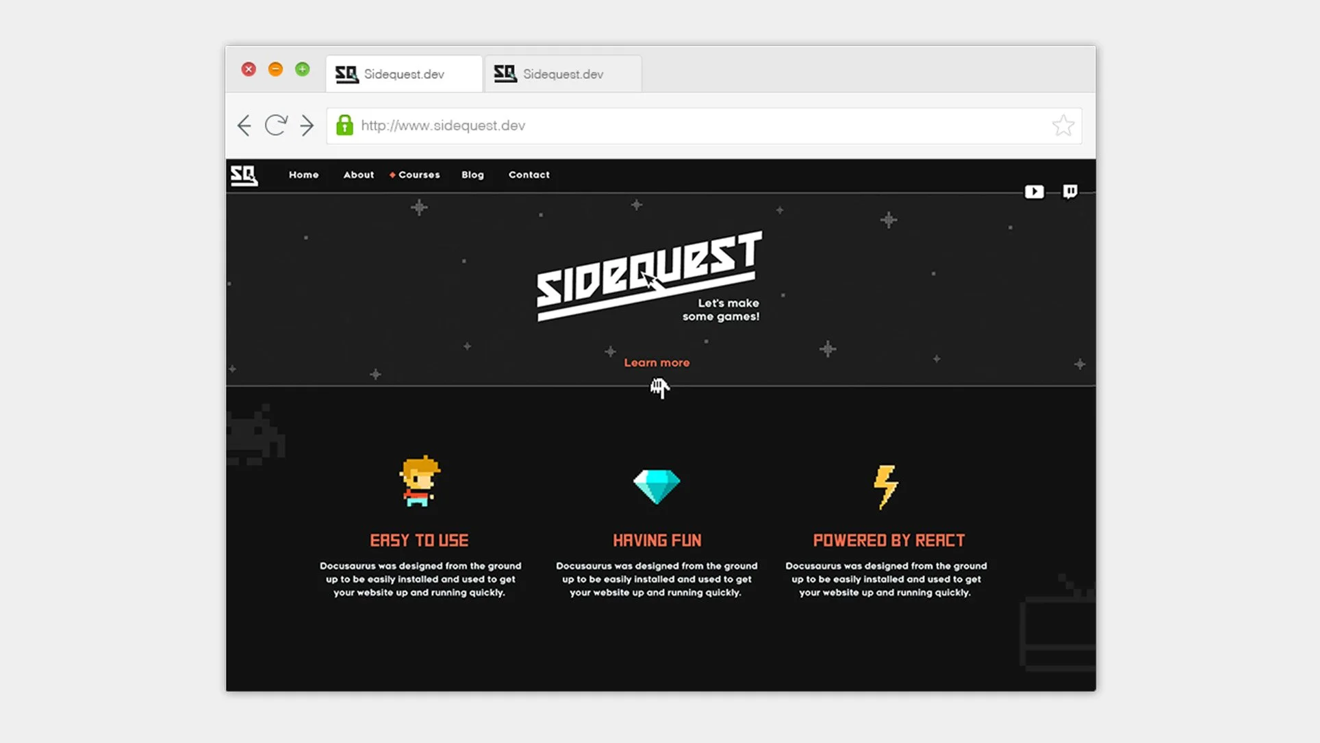 Sidequest is a game development team that creates online educational courses, aiming to build a community of developers who want to apply their skills to create games. They came to me needing a logo and basic branding to establish their visual identity for social media and online presence. I designed a flexible logo system and visual direction that brings their playful, tech-forward personality to life.